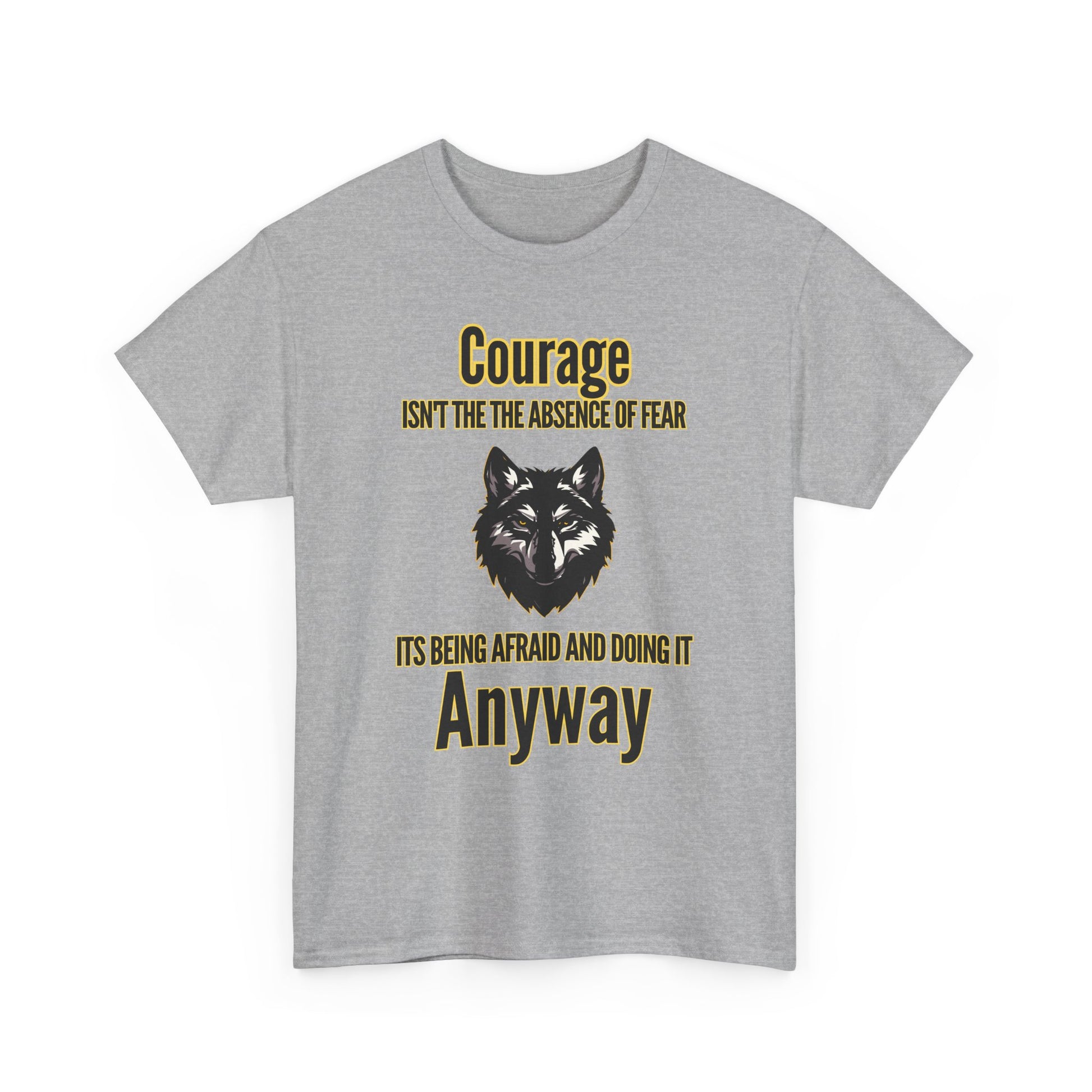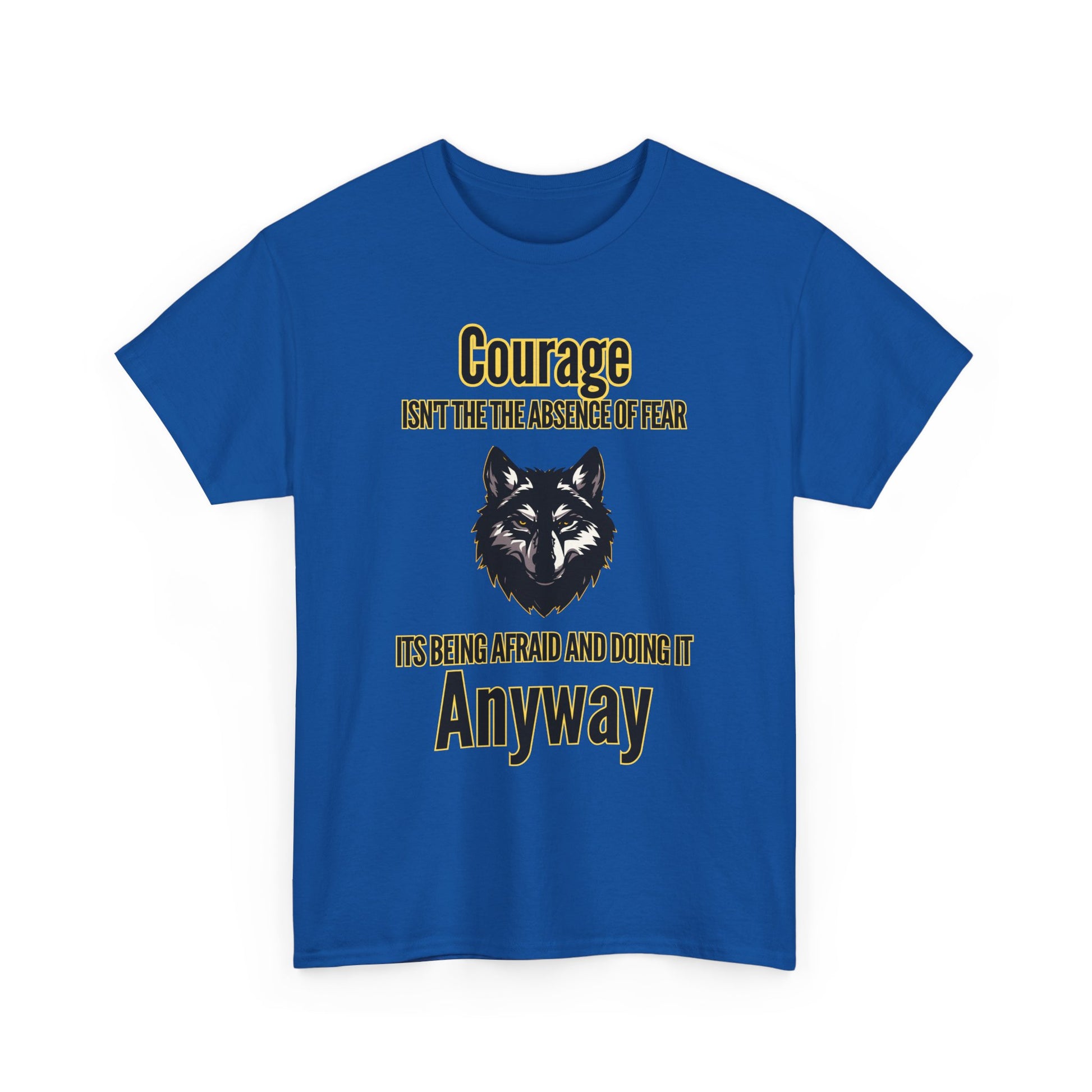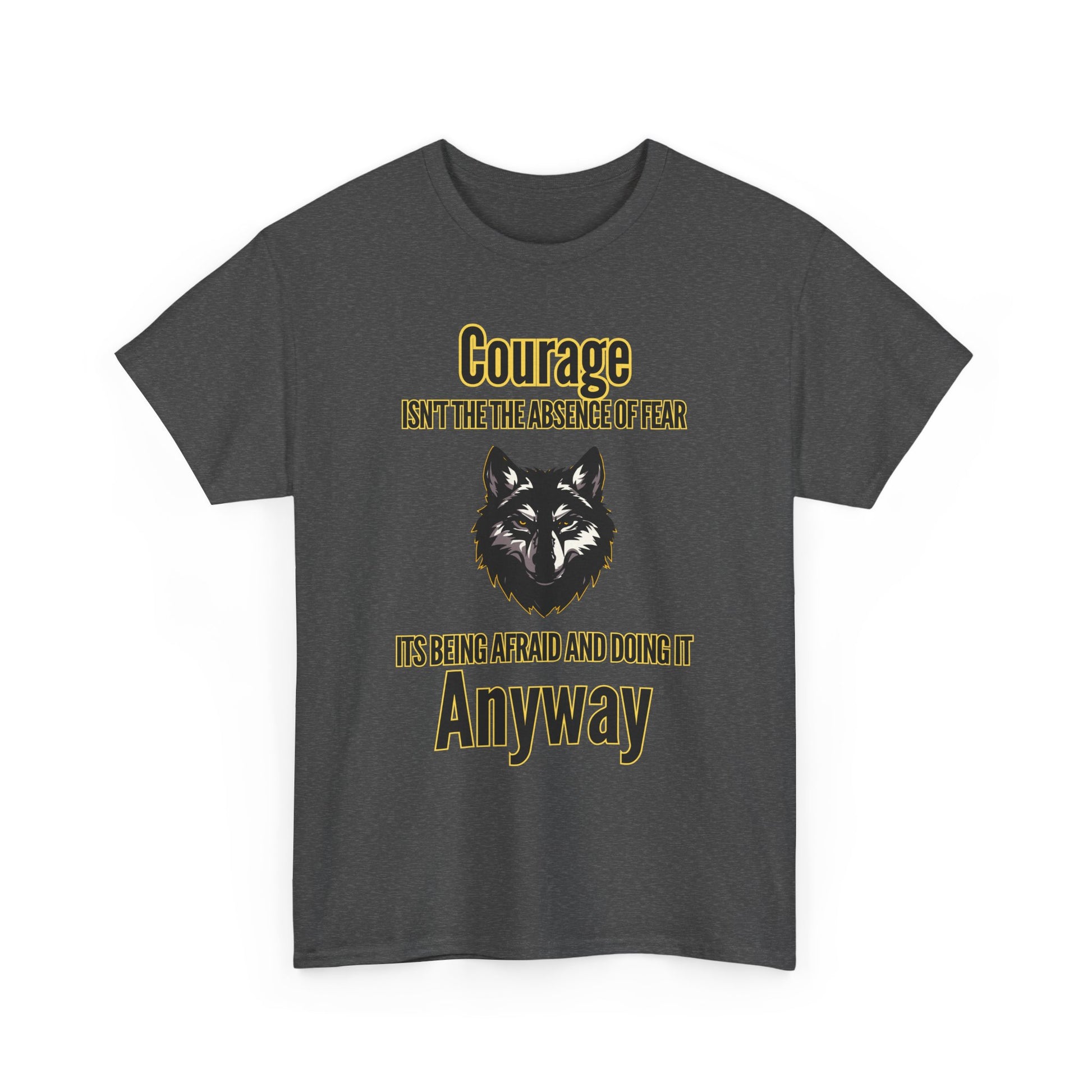 Express your courage, confidence, and love for wolves with this motivational tee – a perfect addition to any wardrobe or a thoughtful gift for the inspiring people in your life.
